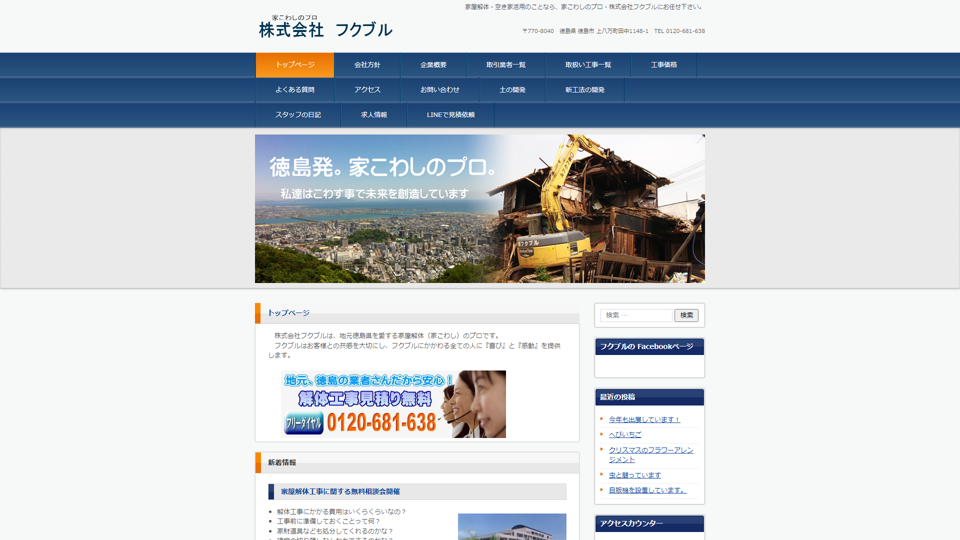 | 資格・許可 | 建築・解体業:徳島県知事許可(般-28)第7805号|産業廃棄物: |