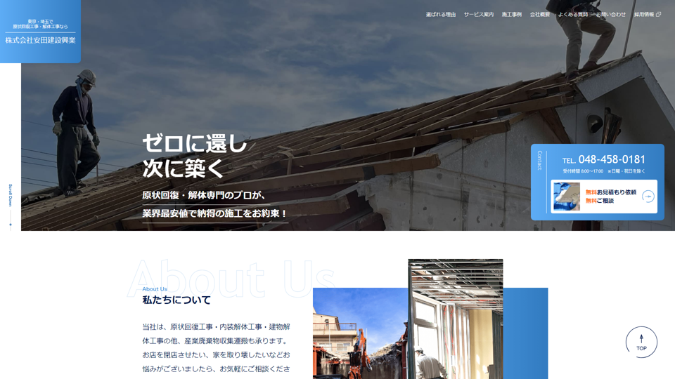 - 木造、鉄骨造、RC造、内装解体を多数施工
