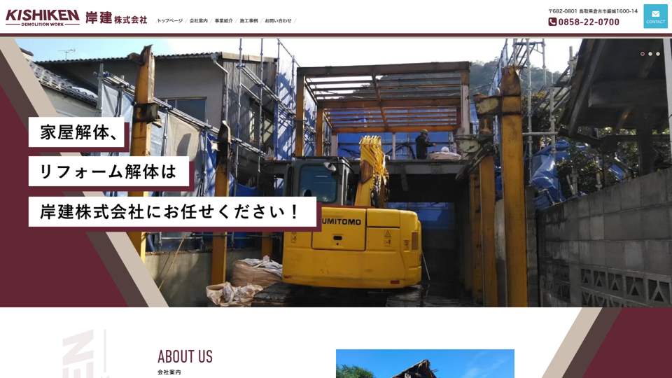| 資格・許可 | 建築・解体業:鳥取県知事許可(般-1)第6710号|産業廃棄物: |