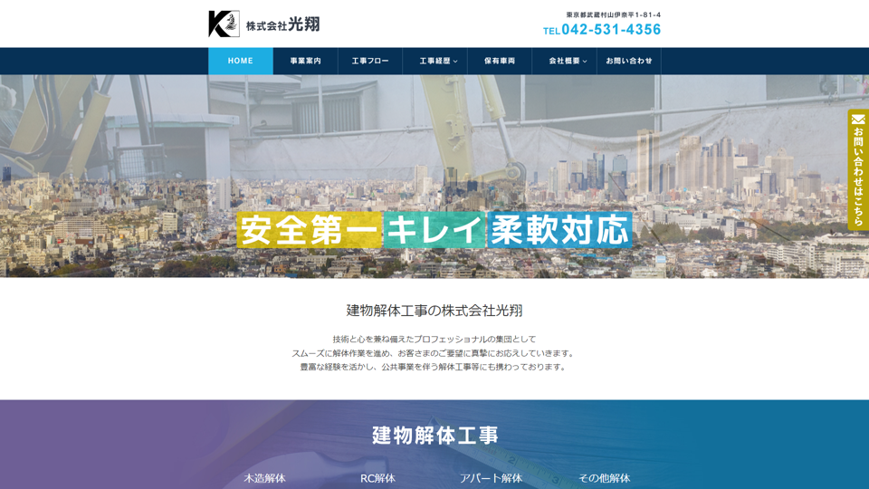 | 資格・許可 | 建築・解体業:東京都知事許可(特-1)第147861号|産業廃棄物:廃棄物取集運搬業許可東京都(第01300197035号) |