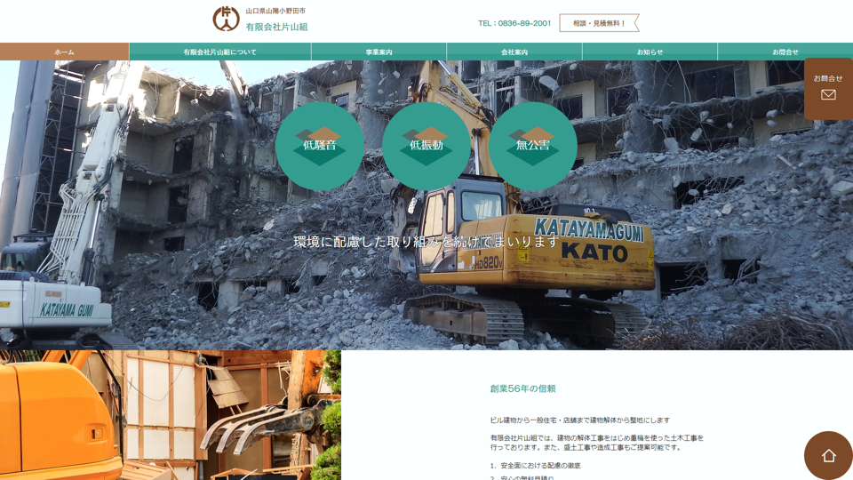 | 資格・許可 | 建築・解体業:山口県知事許可(登-4)第362号|産業廃棄物:山口県知事許可第03506230094号 |