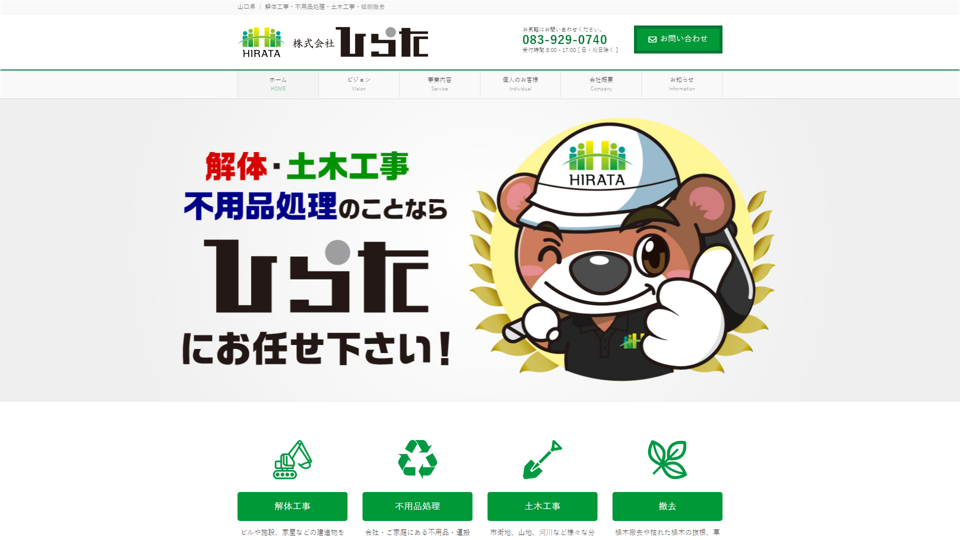 | 資格・許可 | 建築・解体業:(般-13)第12181号|産業廃棄物:産業廃棄物処分業許可番号第3535006523号 |