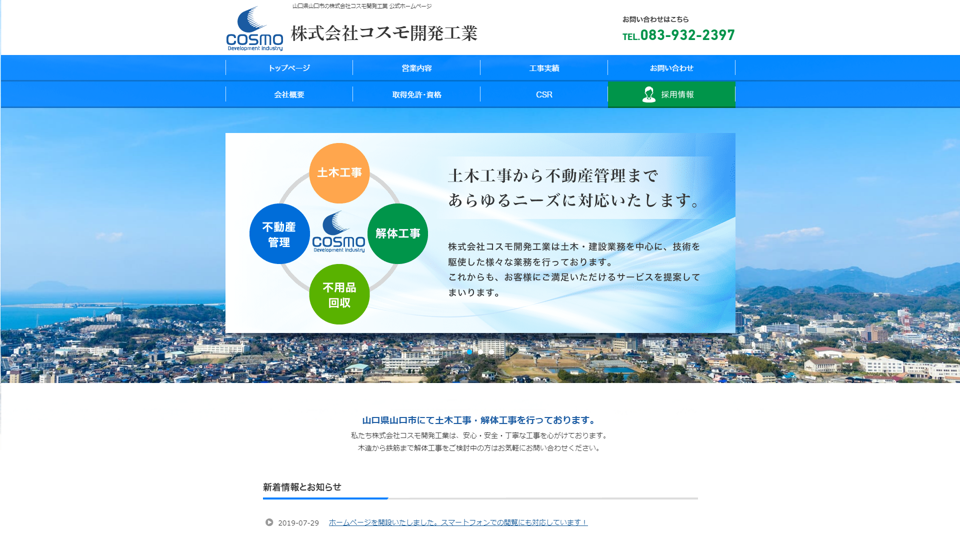 | 資格・許可 | 建築・解体業:山口県知事許可(般-27)第16456号山口県知事許可(般-28)第16456号|産業廃棄物:(山口県)許可番号第03505067537号 |
